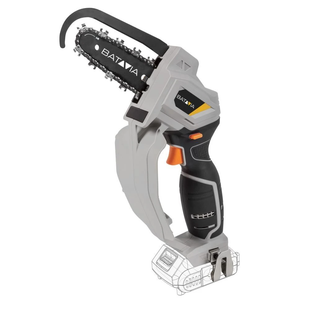 Compacte en handige éénhands accuzaag. Voor het snel en eenvoudig snoeien van takken. Geschikt voor de consument en professional. Toe te passen in de tuin, wijngaard, plantages, bos enzovoort.