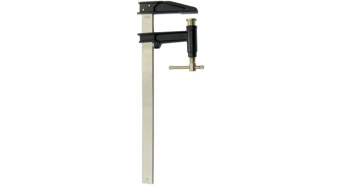 Bessey pomplijmtang met een dubbel spindelmechanisme voor snel aanspannen en lossen. De lijmtang heeft een gladde drukstift voor paralel spannen en kan een spankracht leveren tot wel 8.000 N. Bessey Pomplijmtang PZF 400/120