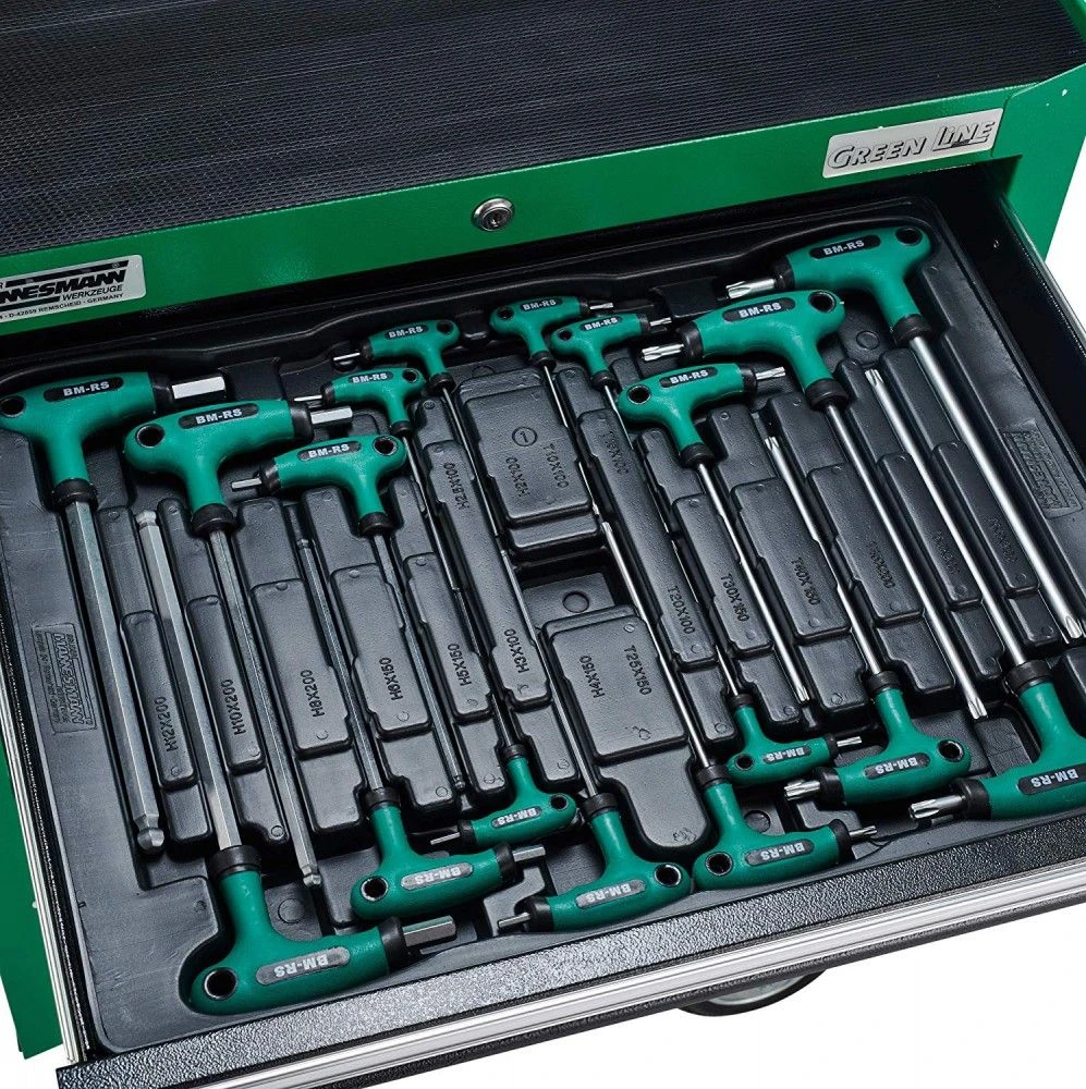 Deze 321-delige gereedschapwagen komt uit de professionele GreenLine serie van Brüder Mannesmann. Over gereedschap uit deze lijn wordt standaard 10 jaar fabrieksgarantie afgegeven. De Mannemann 321-delige gereedschapwagen heeft een uitstekende prijs-kwaliteit verhouding en is optimaal gevuld voor alle klussen aan auto’s, motoren en bromfietsen of in en om het huis.