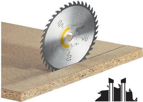 Splintervrije sneden: minder splinters aan de bovenkant van het materiaal bij verstek-langssneden door naar links DRaaien van het zaagblad. Splintervrije snederesultaten aan de onderkant van het materiaal bij gebruik van de splinterbescherming