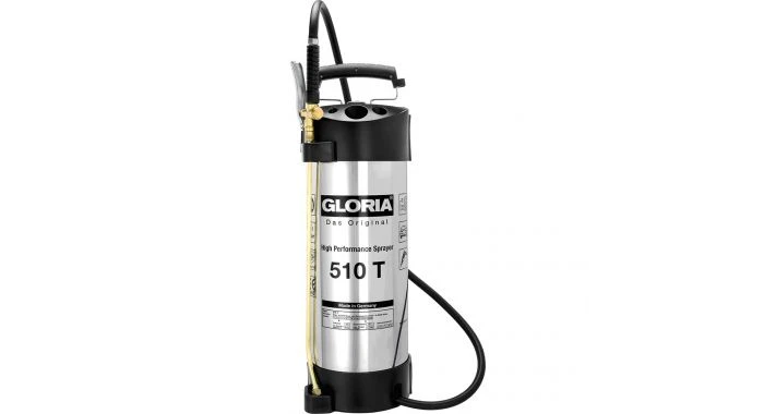Oliebestendige rvs hogedrukspuit, stevige messing knijpkraan, messing spuitstok met vlakstraler, manometer, veiligheids-/afblaasventiel10 L, 510 T Profiline, oliebestend
