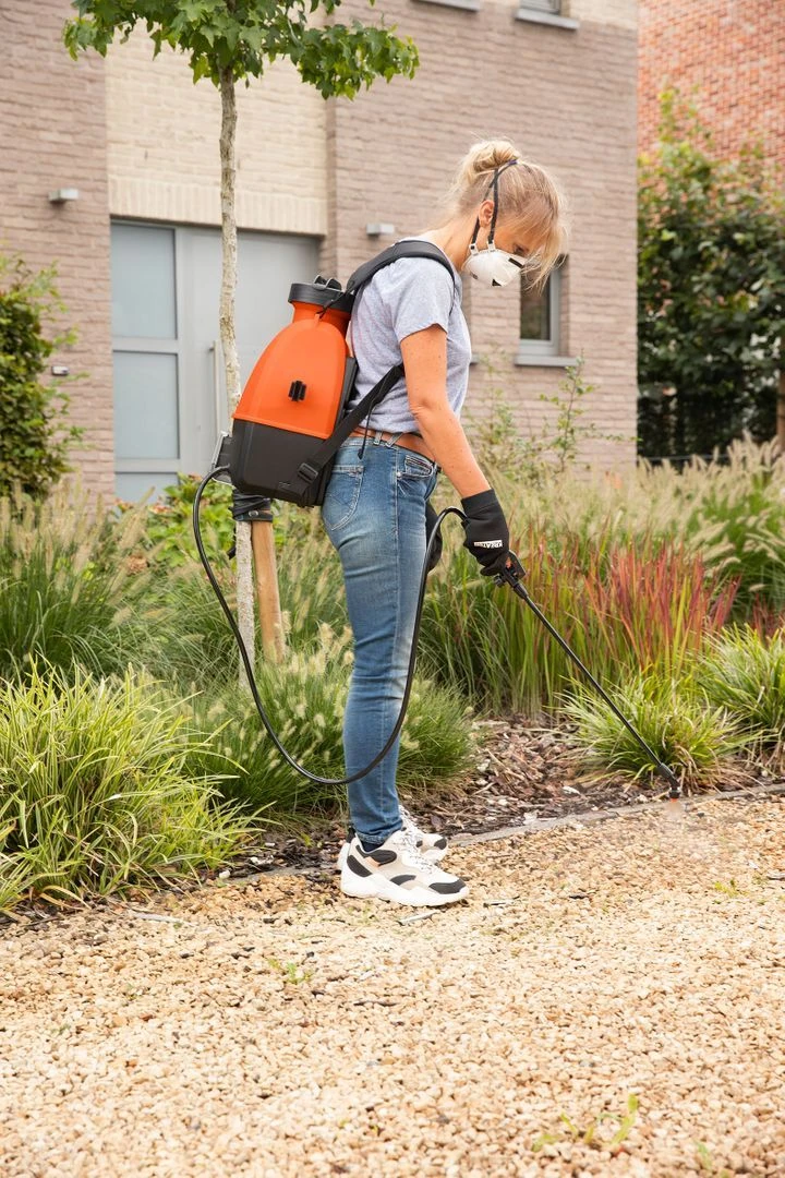 De ruime 16 liter tank kan je eenvoudig zoals een rugzak dragen. Daarbij zorgen de zachte draagriemen voor het nodige comfort. Bovendien komen er geen hinderlijke verlengsnoeren aan te pas en belooft de druksproeier ongelimiteerde bewegingsvrijheid.