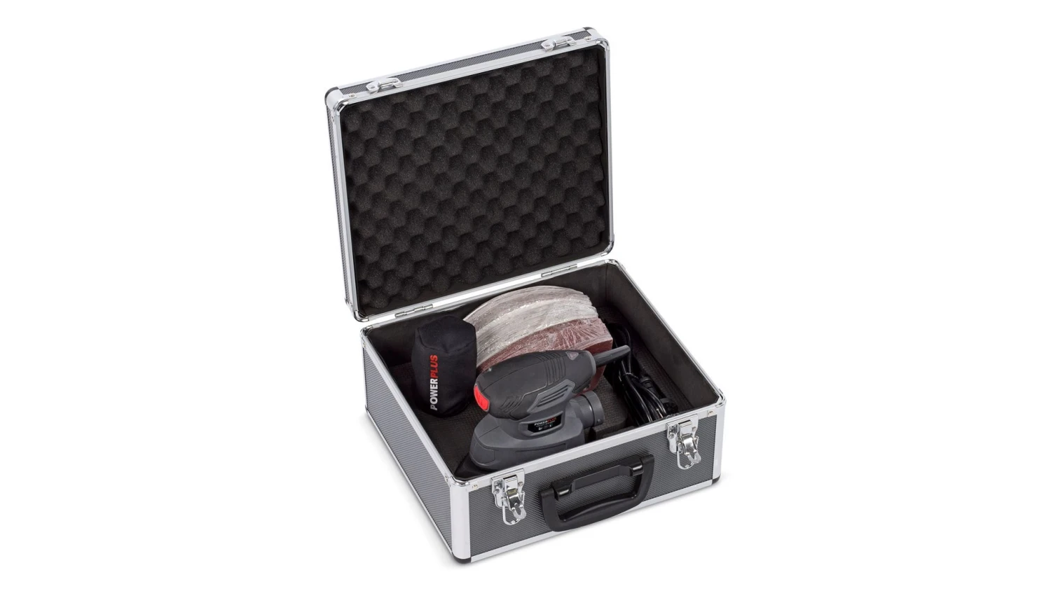 Deze stevige koffer met 140W schuurmachine bevat alles om een schuurklus tot een goed einde te brengen. Je krijgt bij deze POWESET5 maar liefst 100 schuurpapieren met 10 verschillende korreldiktes.