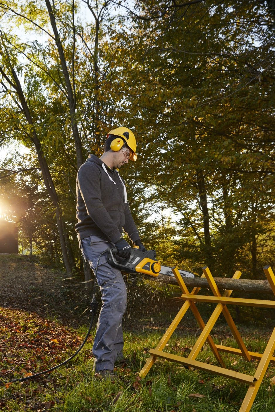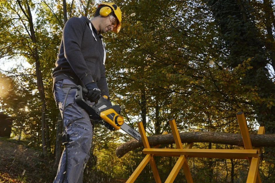 Ga door planken en stammen met de CS 122c (16″) elektrische kettingzaag met performante 2.2 kW motor. Dit toestel is uitgerust met een kwalitatief 40 cm lang zwaard.